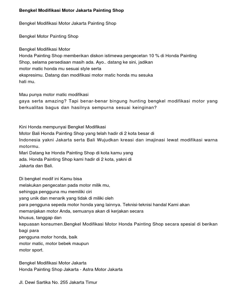 Bengkel Modifikasi Motor Jakarta Painting Shop1160scribd