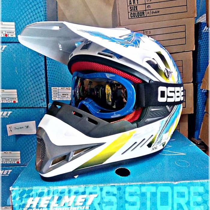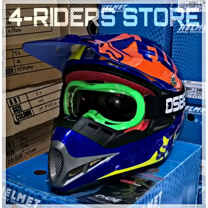 Jual Helm Motor Cross Anak Full Face Free Goggle Osbe Fox Blue
