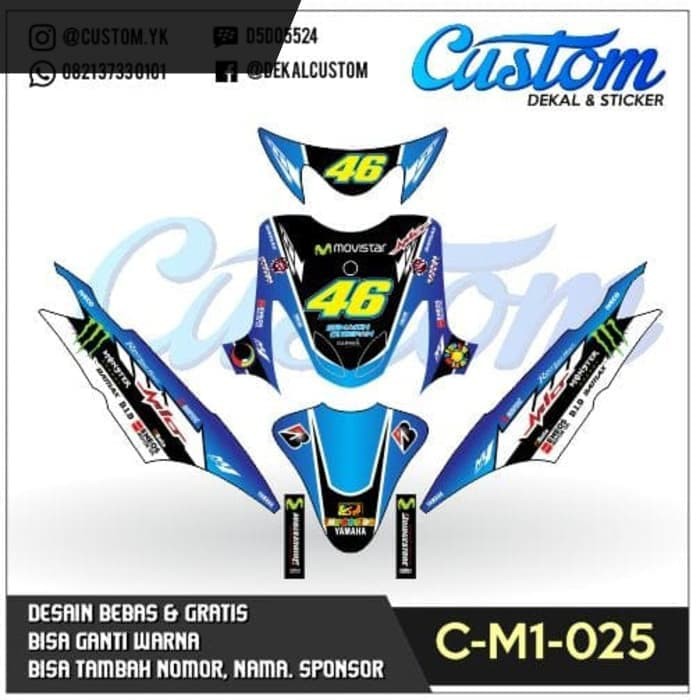 Decal Stiker Motor Mio Sporty Dekal Sticker 46 Vr Rossi Biru